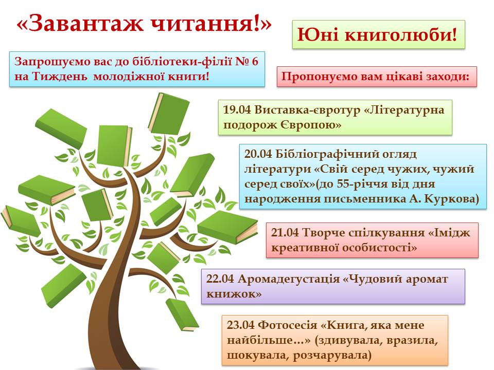 молодіжної книги для юних учасниківнизки яскравих заходів у бібліотеці-філії
